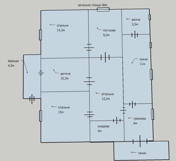 площа будинку 90 м²