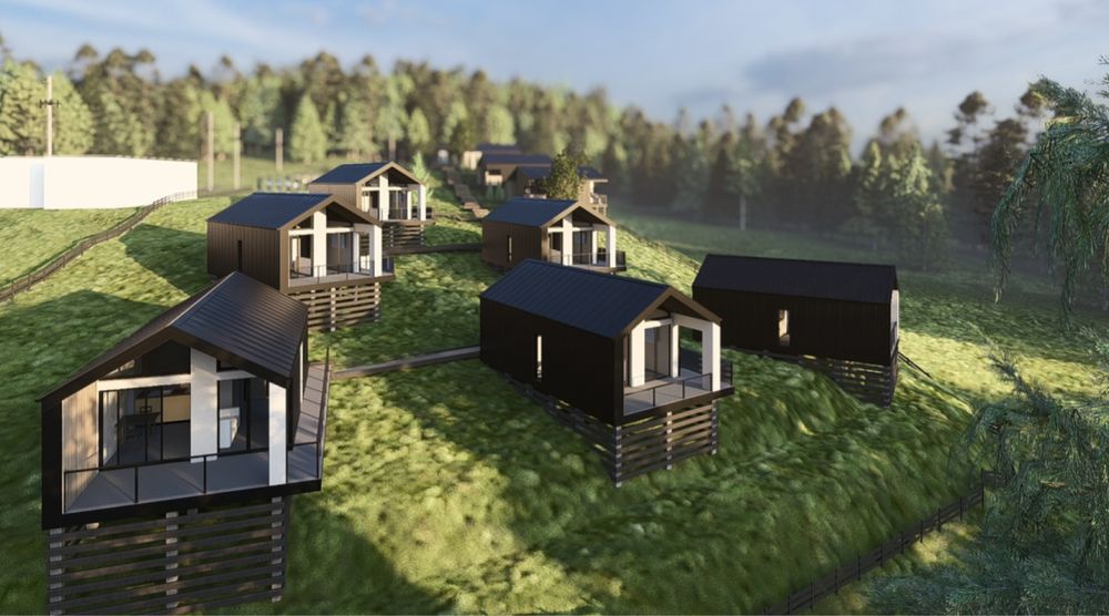 Передбачена забудова комплексу модульних будинків (глемпінг/котеджне містечко).