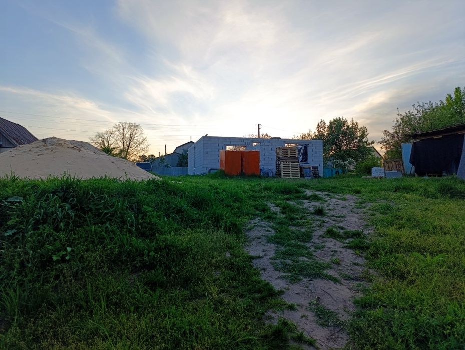 Продам ділянку 16 соток; Ділянка 16 соток, з коробкою першого поверху, є проект. Також в кінці ділянки побудований каркас гостьового будинка 5*7 м висотою 3.40 м, з антресоллю або повного другого поверху.(МОЖЛИВО добудувати)