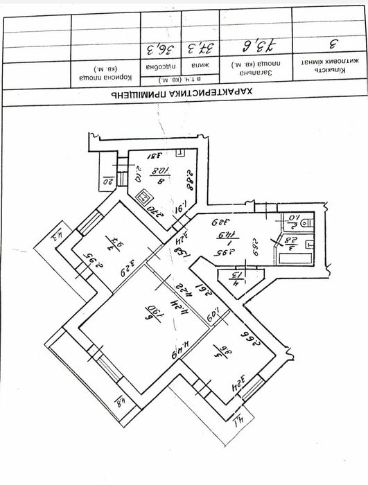 Підсобна площа (кухня, коридор, санвузол): 36,3 кв. м.