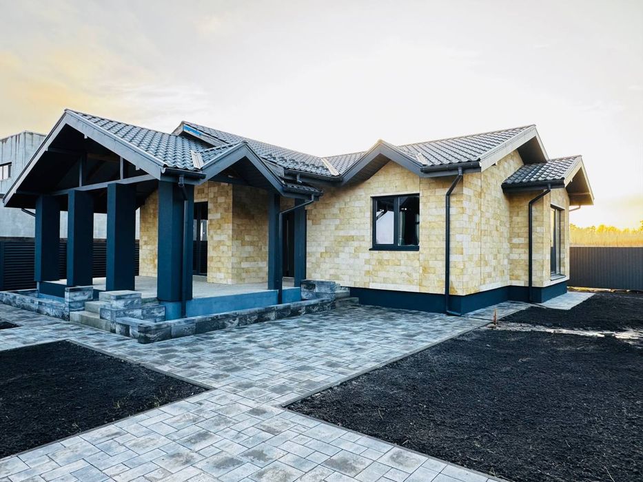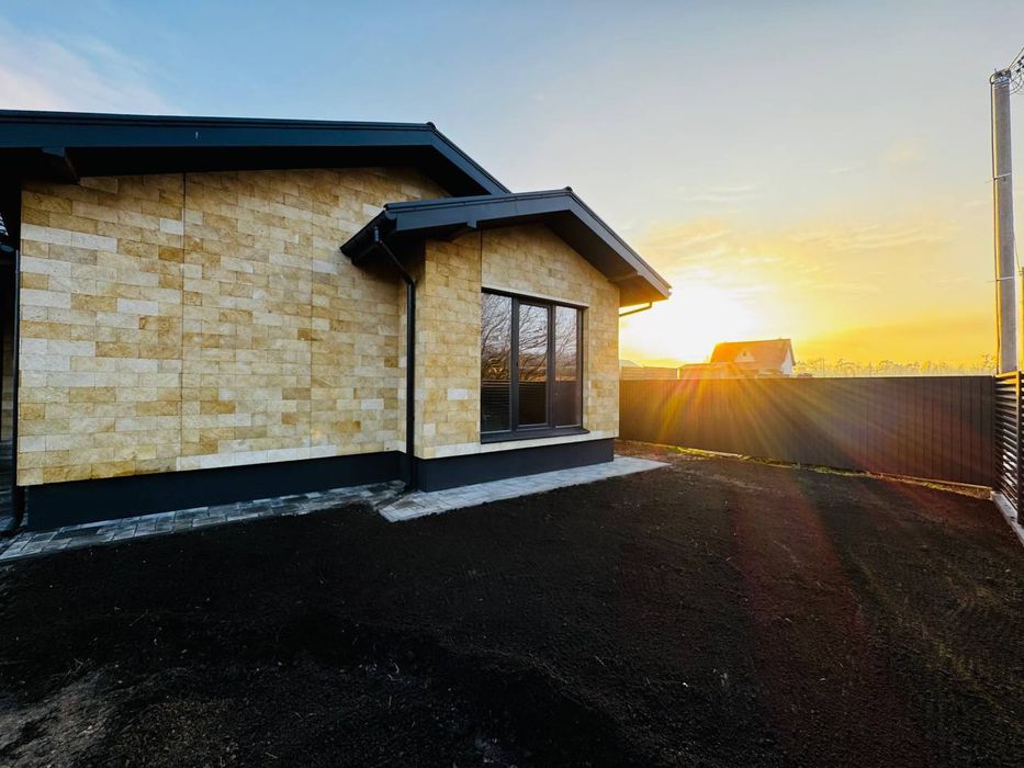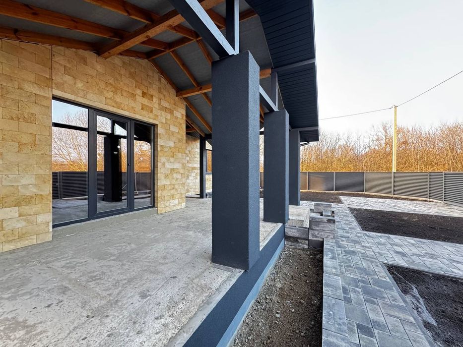 Продаж одноповерхового будинка; Продаж одноповерхового будинка площею 80м² плюс 5 соток землі. Простора кухня-вітальня 22.7 м² з виходом на терасу площею 22м², три кімнати.