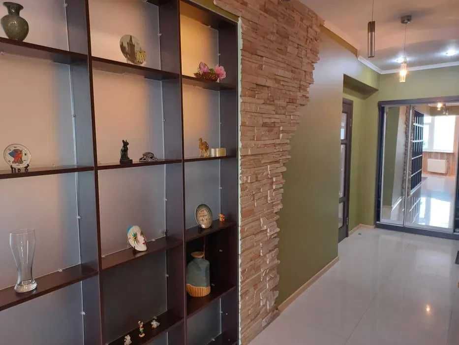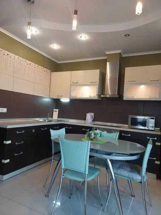 Повністю укомплектована меблями та побутовою технікою: варильна поверхня, духова шафа, мікрохвильова піч, холодильник, посудомийна машина, пральна машина, бойлер, пилосос, кондиціонери у всіх кімнатах, телевізор з домашнім кінотеатром. У спальні ліжко з ортопедичним матрацом. Встановлені лічильники на воду, електроенергію та тепло, броньовані двері, домофон, консьєрж.