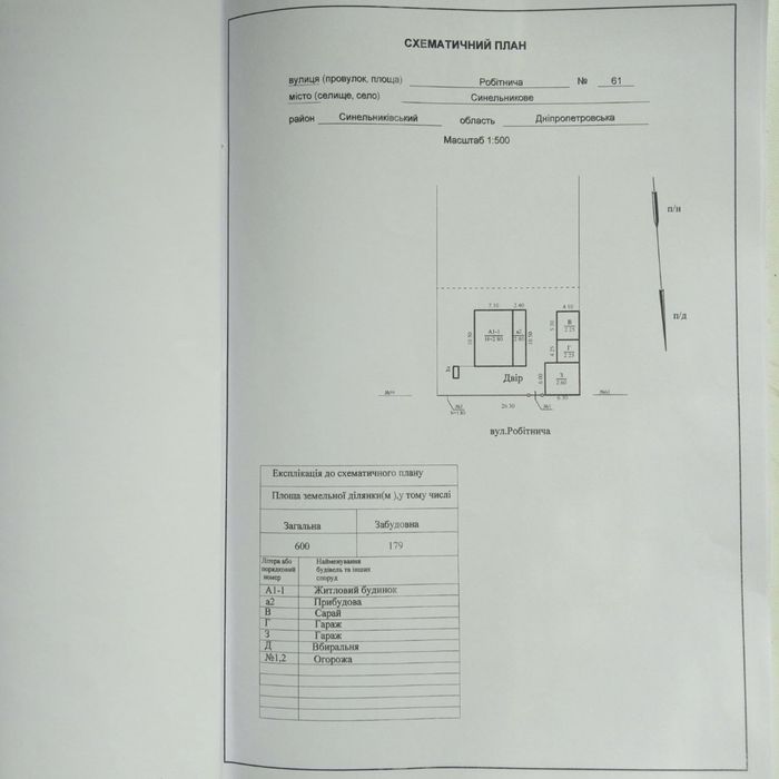 Огляд будинку та ділянки доступний на YouTube — шукайте за запитом "Робітнича 61, Синельникове"