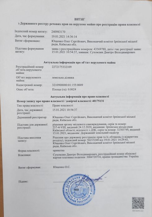 Земельна ділянка для будівництва індивідуального гаражу в м.Ірпінь; Земельна ділянка, для будівництва індивідуального гаражу в м. Ірпінь, вул. А. Антонова, 25/35, площею 0,0024 га.; кадастровий номер: 3210900000:01:155:009