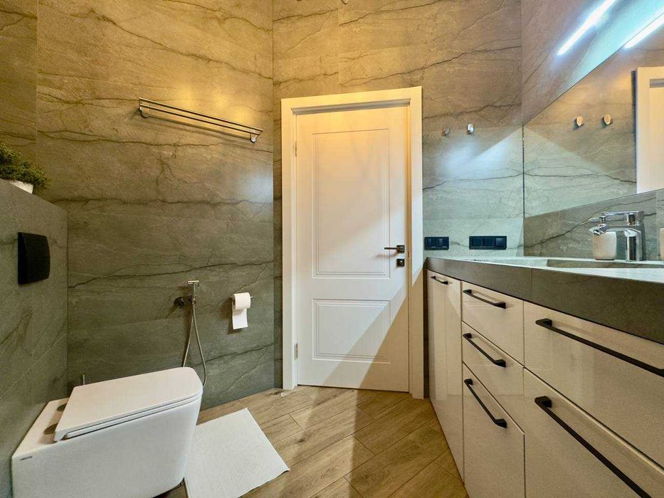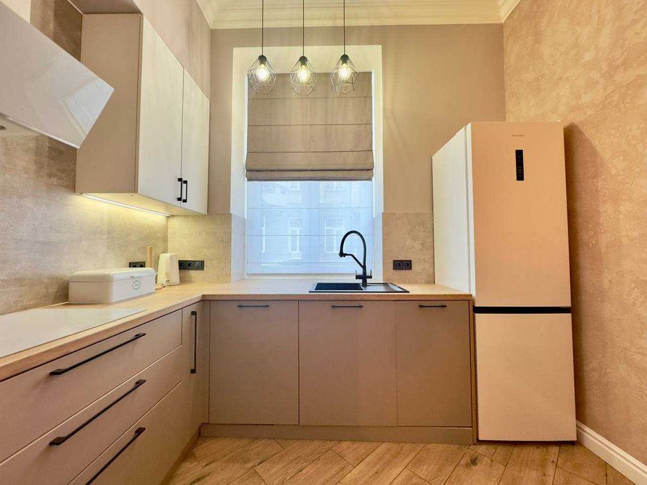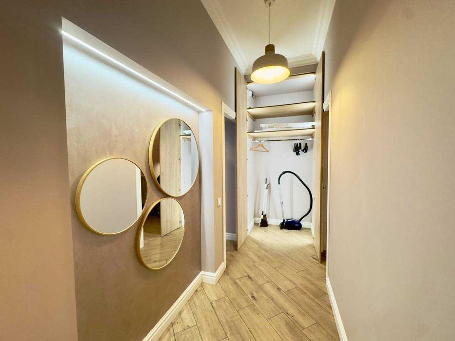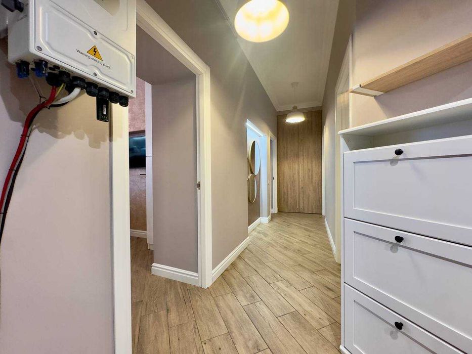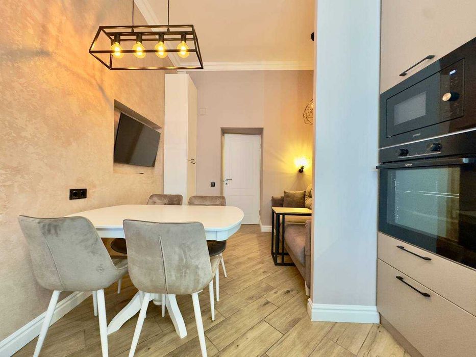 2 роздільні кімнати, простора кухня, є вся необхідна побутова техніка:індукційна плита, духова плита, мікрохвильова, посудомийна машина, пралка, пилосос.