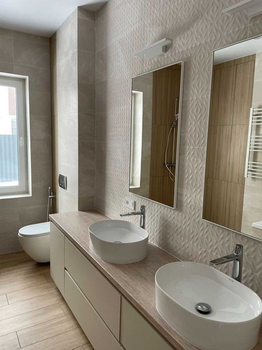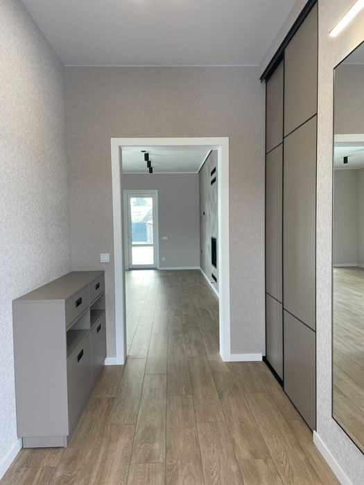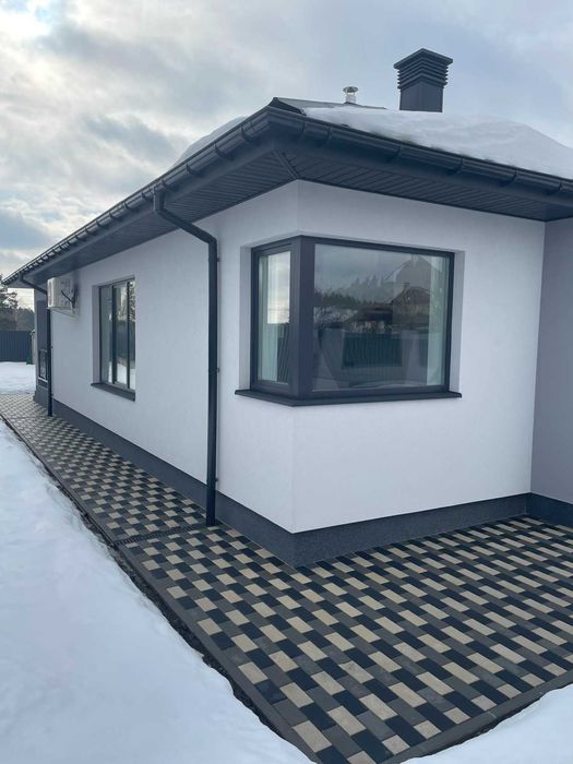 Новий готовий будинок с.Тетерівка, Житомир; Продам свій новий будинок в с.Тетерівка. Розташований недалеко від зупинки, поруч річка, ліс. До центру міста 10-15 хв. на машині. Будинок на 114 кв. має гарне та зручне планування. Велика кухня- вітальня з каміном, дві спальні, гардероб, ванна кімната, туалет, котельня. Зроблено хороший ремонт, частково змонтовані меблі, встановлена якісна техніка, сантехніка, кондиціонери, все іноземного виробництва. Будинок розташований на огородженій ділянці 10 соток, встановлені ворота , двір вимощений бруківкою. Побудоване хоз. приміщення. Будинок готовий для проживання. Ціна обговорюється. Подробиці по телефону або при зустрічі.