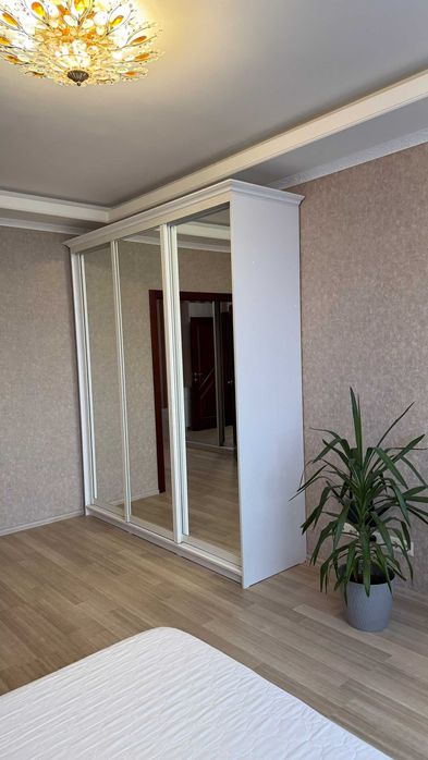 Кімната укомплектована меблями: двоспальне ліжко, шкафи-купе, комод, кондиціонер.