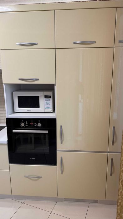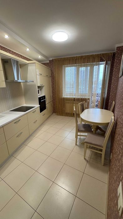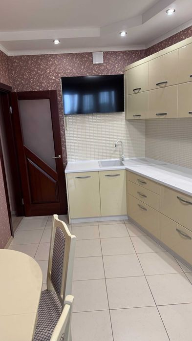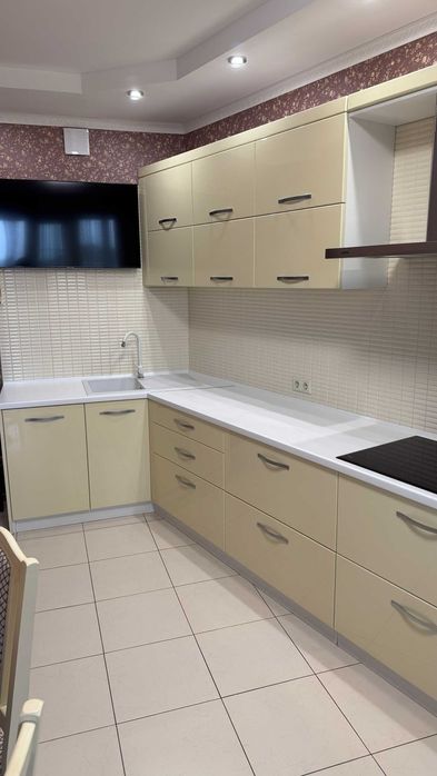 Кухня укомплектована технікою: вбудований холодильник, духова шафа, варильна поверхня, витяжка, телевізор, підігрів підлоги від централізованого тепло постачання.