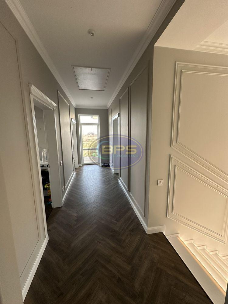 Продается новый дом с дизайнерским ремонтом 280 кв.м на участке 6 соток с новым ремонтом. Первый этаж: кухня-студия с выходом на террасу, гостевой спальней, подсобным помещением и санузлом. Второй этаж: две детские, хозяйская спальня со своей гардеробной, санузлом. Имеется цокольный этаж с гаражом, постирочной, сауной с комнатой отдыха. Дом имеет отопление от теплового насоса воздух-вода с подготовкой под фанкойлы. Снаружи незавершенный фасад.