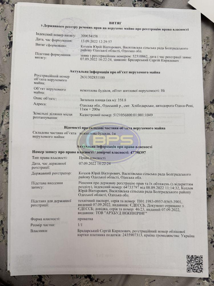 Готовий бізнес-об'єкт на Маяцькій трасі! Шановні власники бізнесу та підприємці! Шукаєте ідеальне місце для розвитку своєї справи? Пропонуємо двоповерховий магазин 400 м² на стратегічній Маяцькій трасі, в районі Двох Стовпів. Це не просто нерухомість, а готова платформа для вашого успіху! Чому це вигідне вкладення? Привабливе розташування: Високий трафік Маяцької траси і впізнаваний район Двох Стовпів гарантують постійний потік клієнтів. Повна інфраструктура: Вода, світло (220V), 2 вигрібні ями. 2 обладнані санвузли з бойлером, унітазами, душовими кабінами і новою пральною машиною. Кімната для персоналу, кабінет. 2 великі склади з можливістю добудови ще 150 м² - ідеально для розширення асортименту або логістики. Запасний вихід, бетонні сходи. Комунікації для кондиціонерів уже проведені. Зручність і доступність: Будівлю можна обійти навколо, по периметру - тротуарна плитка. Паркувальні місця - величезний плюс для залучення клієнтів. Повний пакет документів: Усі документи на землю і будівлю (право власності) в порядку, що забезпечує швидку і безпечну угоду. Уявіть: ваш бізнес процвітає в сучасному, зручно розташованому магазині, готовому до роботи. Це ідеальна локація для супермаркету, будівельного магазину, торгового центру або будь-якого іншого проєкту, що вимагає великих площ і гарної видимості. Не пропустіть шанс придбати актив, який принесе прибуток з першого дня!