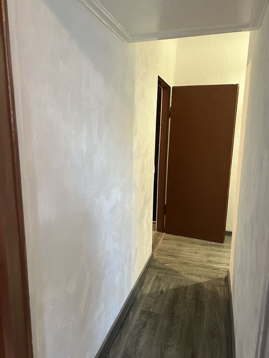 На полу в двух комнатах ламинат , в коридоре и кухне линолеум.