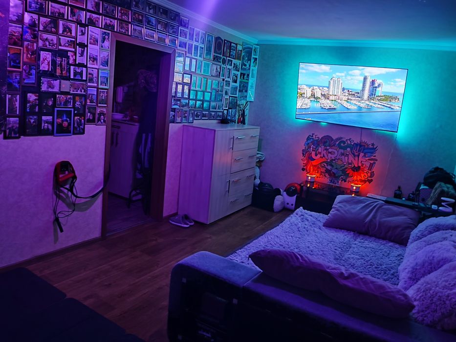 великі картини, сенсорні вимикачи світла, дизайнерська душева - скрите світло, встановленна тепла підлога, кондиціонер дуже рідкий чорного кольору, великі плазмові телевізори із підсвіткою, авжеш усюди пластикові вікна та повністю пластиковий балкон.