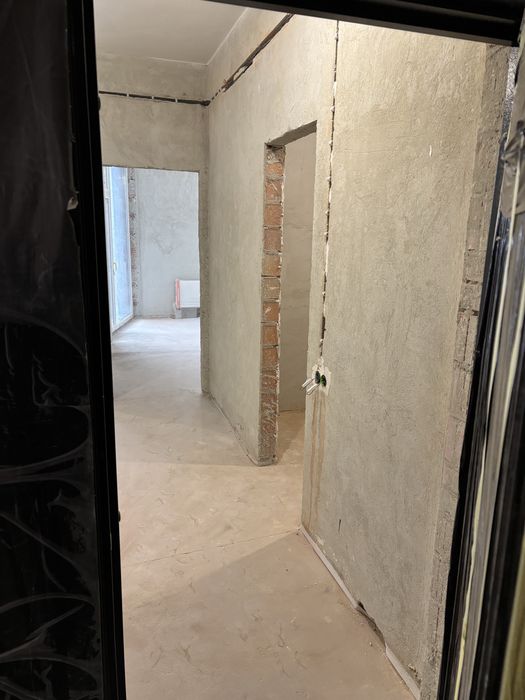 - оштукатурено санвузол; шпатльовано і перетерто стелю по всій квартирі - готова до пофарбування;