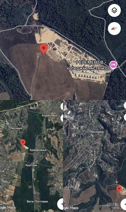 Земельна ділянка ОСГ/забудова 1.5га Лісники ,Хотів , Ходосівка; Пропонується до продажу земельна ділянка площею 1,5 га, розташована між селами Лісники, Ходосівка та Хотів — усього за кілька хвилин від Києва.