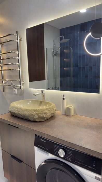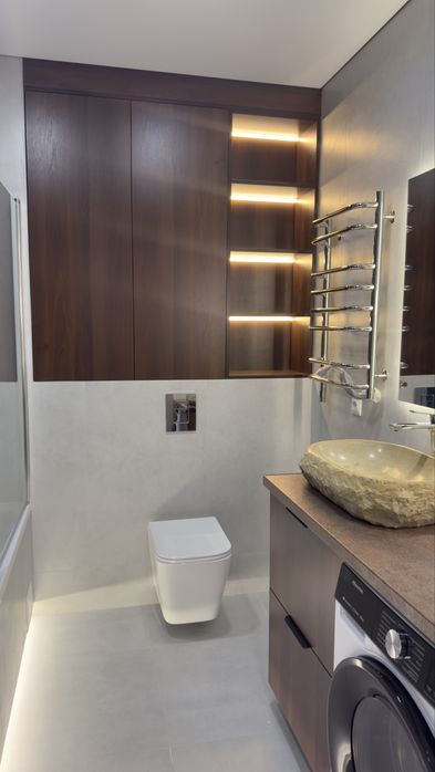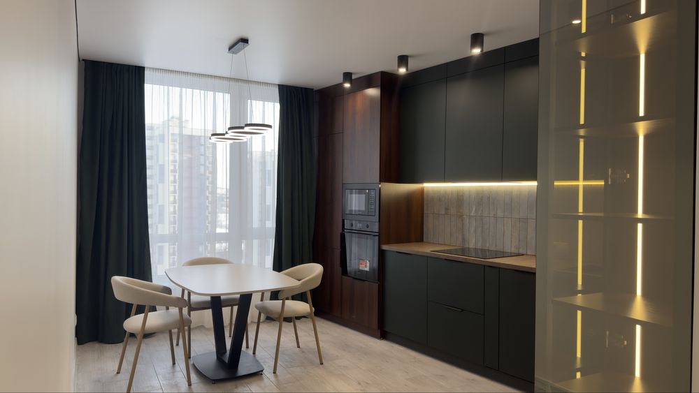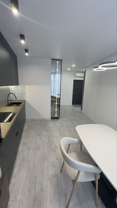 Виконано сучасний дизайнерський ремонт із використанням якісних та дорогих матеріалів. Простір продуманий до деталей — багато світла, функціональне планування та стильний мінімалістичний інтер’єр.