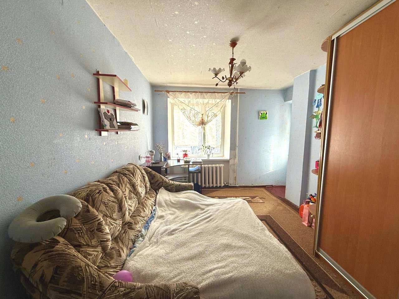 Пропонується до продажу простора чотирикімнатна квартира в місті Яготин, Київської області, всього за 100 км від Києва. Квартира розташована на 3-му поверсі п’ятиповерхового цегляного будинку, має загальну площу 78 м², житлову — 48 м², кухня — 10 м². Планування дуже зручне: всі кімнати непрохідні, санвузол роздільний. У квартирі виконаний ремонт, встановлені металопластикові вікна. Опалення індивідуальне газове. Вода і каналізація централізовані. Розташування зручне: в пішій доступності магазин (5 хвилин), залізничний вокзал (10 хвилин), поруч школа, дитячий садочок та дитячий майданчик. До центру міста — близько 5 хвилин на авто. У місті добре розвинена інфраструктура — є мережеві супермаркети, магазини, аптеки, лікарня, парк і мальовничі озера для відпочинку. Зручне транспортне сполучення зі столицею: регулярно курсують електропоїзди та маршрутки до метро Харківська щогодини. Гарний варіант для комфортного проживання в спокійному місті неподалік Києва.