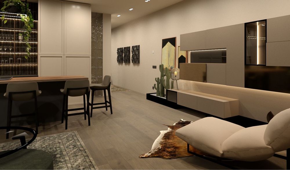 Дизанерська квартира; Квартира виконана за індивідуальним дизайнерським проєктом із використанням преміальних матеріалів та ексклюзивних предметів інтер’єру. Кожна деталь продумана до дрібниць: авторські меблі, які виготовлялися під замовлення, дизайнерське освітлення, стильні декоративні елементи, натуральні текстури та благородна кольорова гама створюють атмосферу вишуканості та затишку.