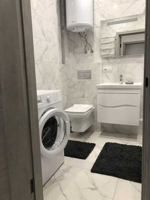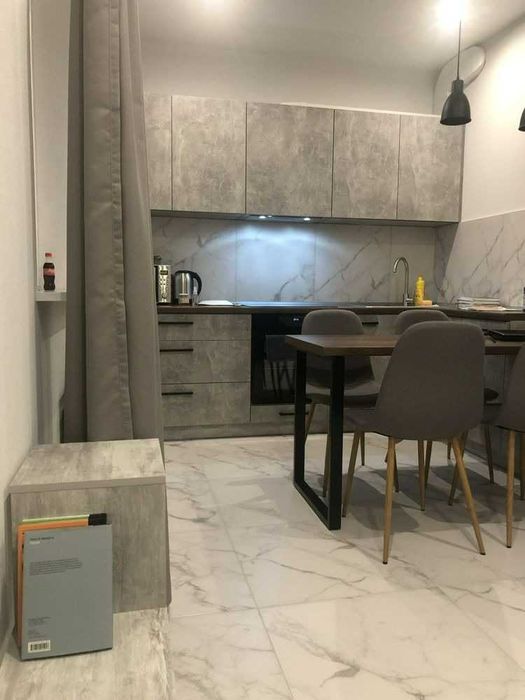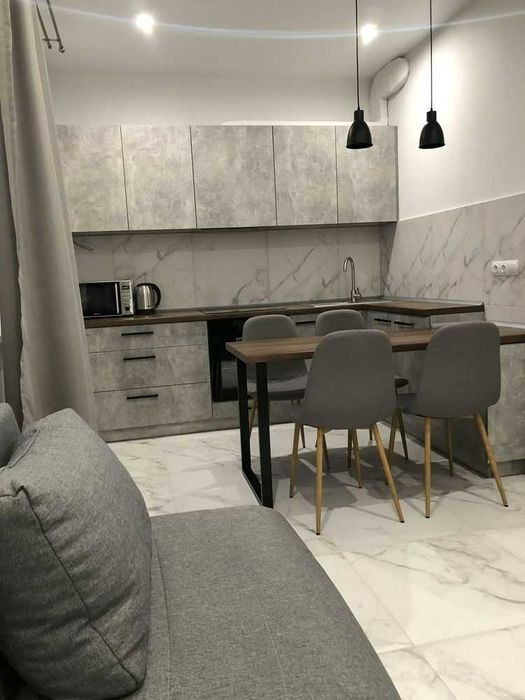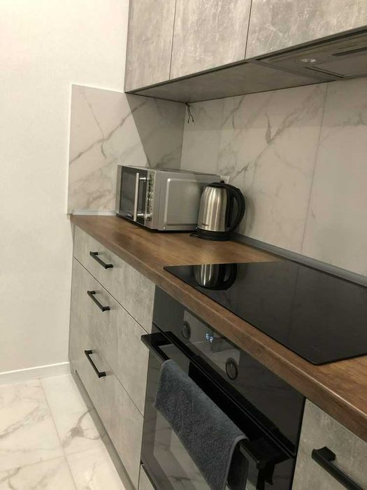 У квартирі є все необхідне для комфортного проживання: підключений інтернет, додатково встановлений бойлер, пральна машина, електрична сушарка для рушників, холодильник, мікрохвильова піч. Для зберігання речей передбачені шафа, комод і дві підлогові тумби. Спальні місця — розкладний диван у спальні та розкладне крісло в кухні-студії. Також є прасувальна дошка та праска.