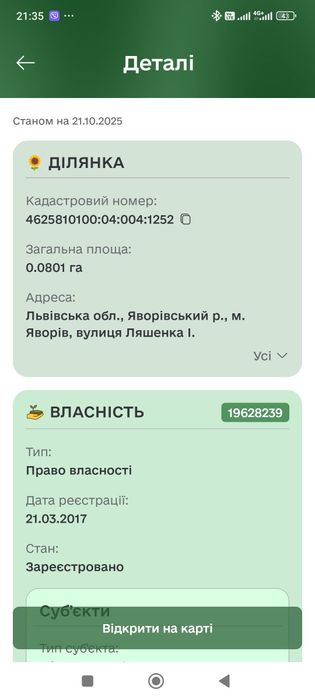 | Земельна ділянка: |