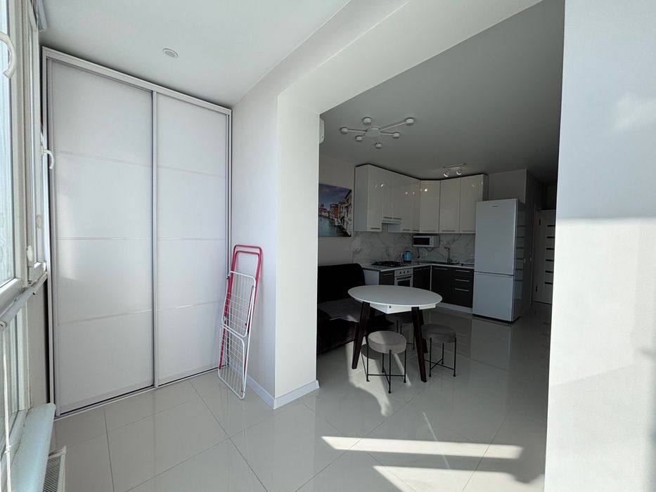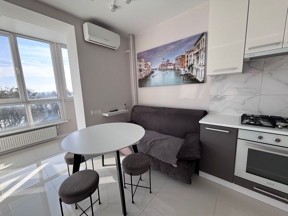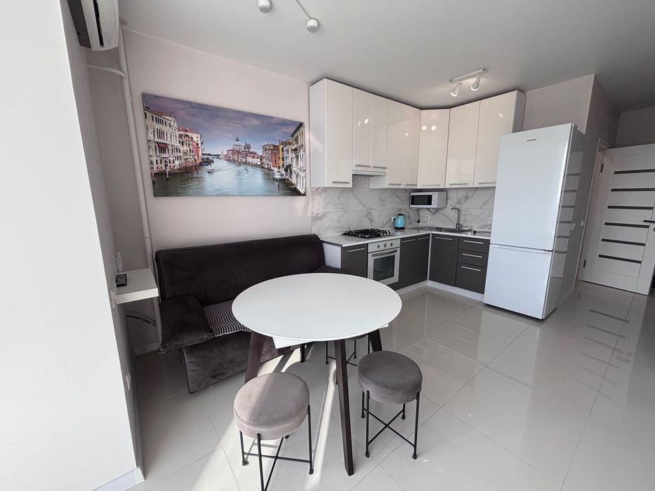 Оренда квартири на Поділлі Жк «Перлина Поділля»; Здається в оренду сучасна, комфортна і стильна квартира, з якісним ремонтом та технікою.В квартирі є велике розкладне ліжко і мобільний розкладний диван у кухні-студії, для комфорту ваших гостей. Також багато місця для гардеробу і додаткових речей на лоджії.