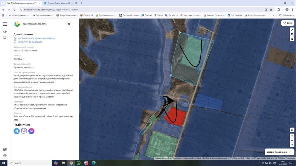 Продаж земельних ділянок 8 га , для виробництва; С. Стайки , Ржищівська ОТГ. Обухівський район. 2 ділянки поруч 2.75 га + 4.95 га . На ділянках наявні залишки будівель колишнього колгоспу. Цільове призначення 11.02 Для розміщення та експлуатації основних, підсобних і допоміжних будівель та споруд підприємств переробної