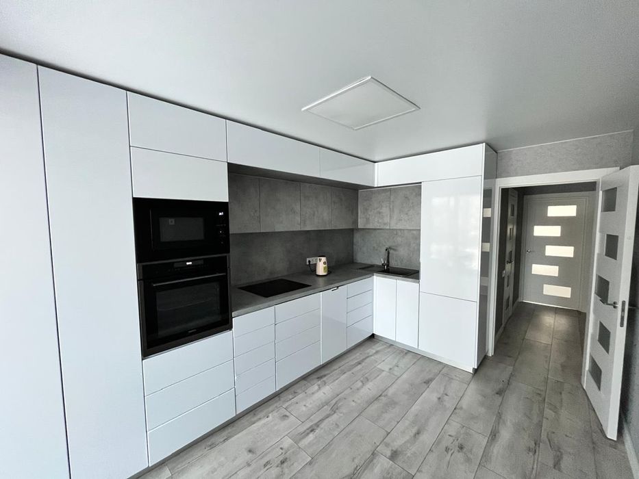 На кухні є панорамне вікно з чудовим краєвидом, яке наповнює простір світлом і створює особливу атмосферу.