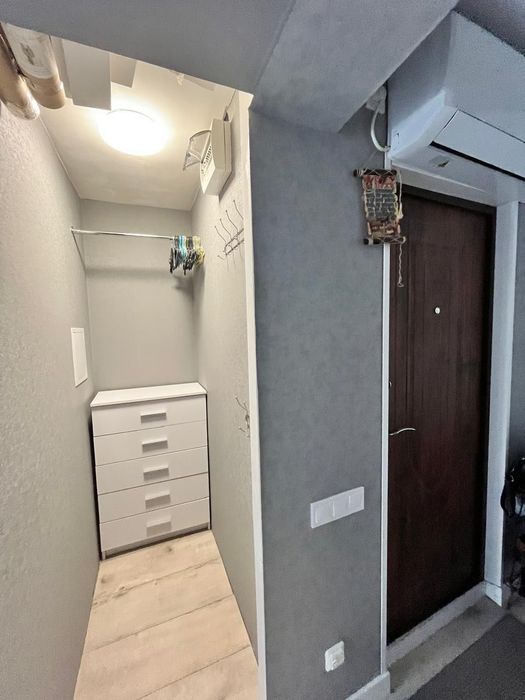 Є окрема гардеробна кімната, що забезпечує додатковий простір для зберігання.