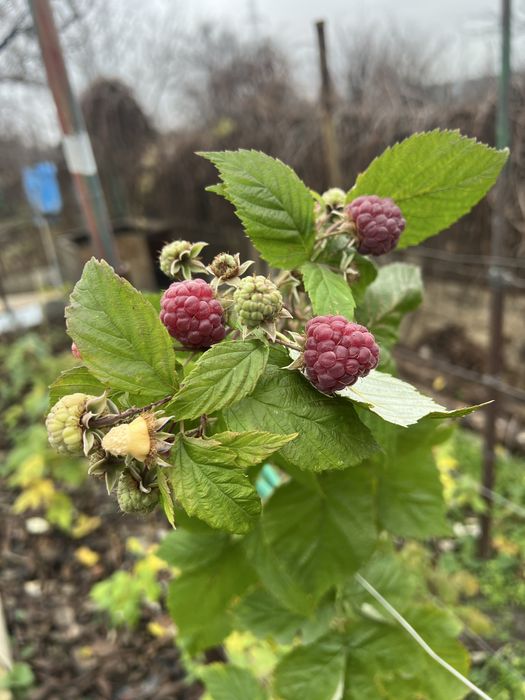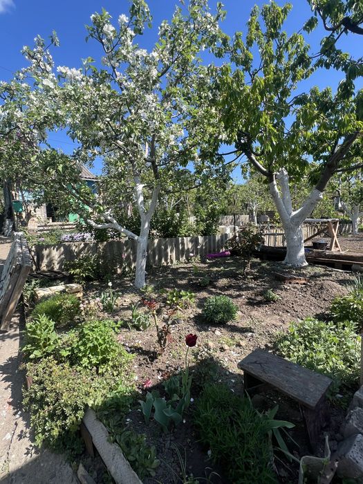 Плодові дерева: груша, два абрикоси, персик, вишня, три яблуні, черешня, інжир. Чорна смородина, біла, червона. Виноград, актинідія, калина.