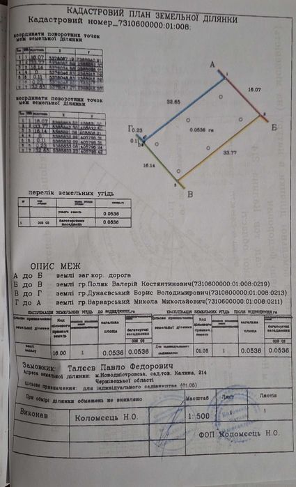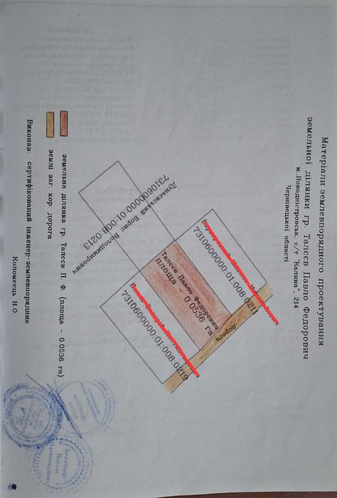 Продаж землі Нерухомість/ Земля; Продається земельна ділянка с/т "Калина" біля міста Новодністровськ Чернівецька обл. Поруч є світло і газ. Земельна ділянка біля лісу, недалеко за лісом річка Дністер. Участок прямокутний, рівний - 0,0536 га.; кадастровий номер: 7310600000:01:008