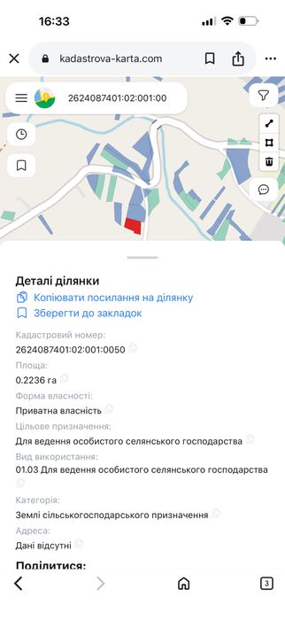 | Земельна ділянка: |