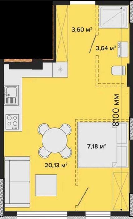 • Загальна площа — 27м²