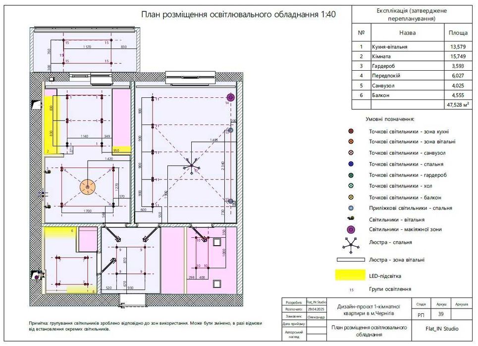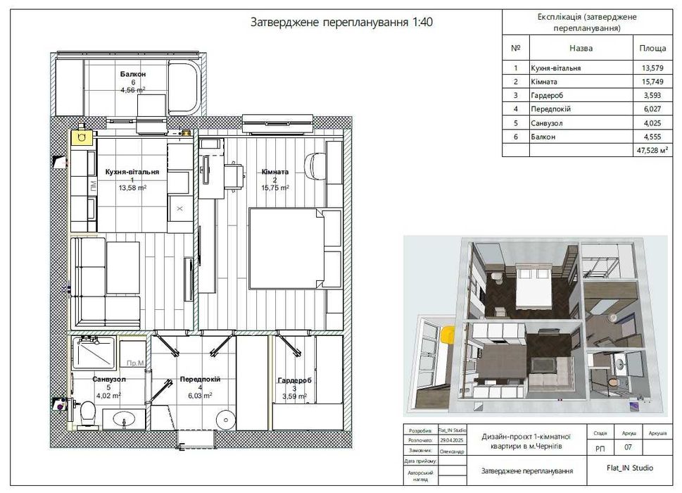Дизайн-проєкт розроблено з метою максимально корисного використання кожного квадратного метру, що зробить квартиру комфортною як для особистого проживання, так і вигідно вирізнятиме її на ринку оренди (оскільки більшість однокімнатних квартир в Чернігові, що пропонуються в оренду, мають однотипне планування та меблювання).