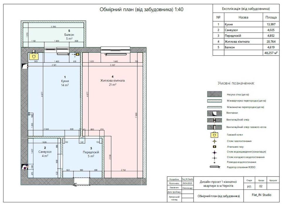 Продам 1-кімнатну квартиру з готовим дизайн-проєктом; Продам 1-кімнатну квартиру з індивідуальним газовим опаленням у новобудові на Жабинського, 2Е. Будинок побудовано з білої цегли, включно з внутрішніми перегородками.