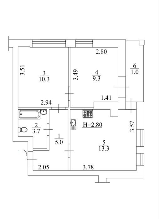• Стеля: 2.80 м