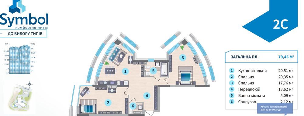 • Площа: 79.45 м²