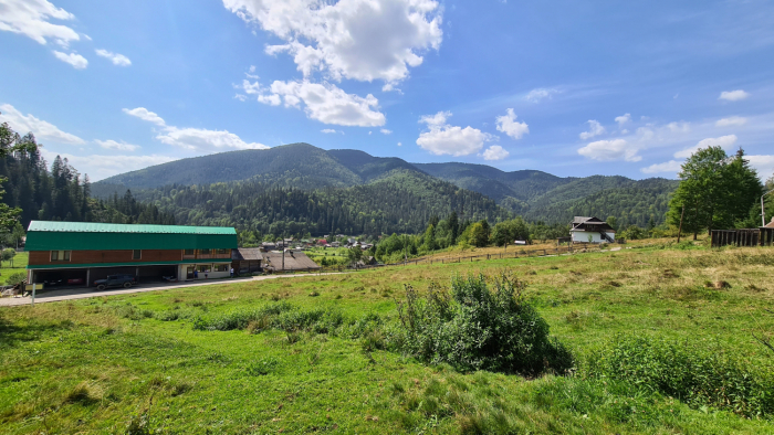 Слово "затишок" чудово описує те, що відчуваєш, перебуваючи на цій пологій ділянці рівної форми. Земельна ділянка розташована за 400 м від головної дороги, що веде до гірськолижного курорту Буковель. Поруч розташований готельно-відпочинковий комплекс "Коруна".
