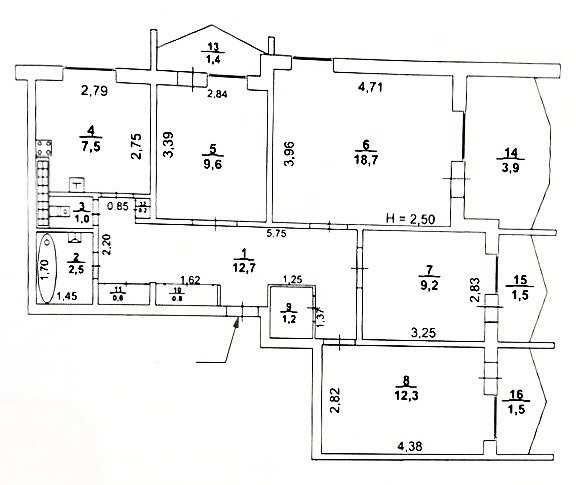 висота стелі, м: 2, 7