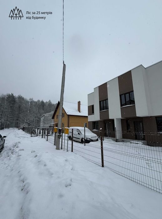 ВІД ВЛАСНИКА. Дуплекс біля лісу в Оброшине (15 хв до Victoria Gardens); Продаж сучасного дуплексу (два повністю автономні будинки, що межують однією спільною стіною, по 102,82 м² кожен) з готовими документами та підключеними комунікаціями. Локація поєднує безпосередню близькість до лісу (25 м) та розвинену інфраструктуру села. Фасад повністю утеплений та оздоблений. А також додатковий бонус - горище (40-50 м²), метраж якого не входить у загальну площу.