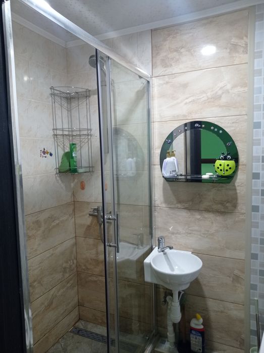 Ванна кімната обладнана душовою кабіною. Нова сантехніка.