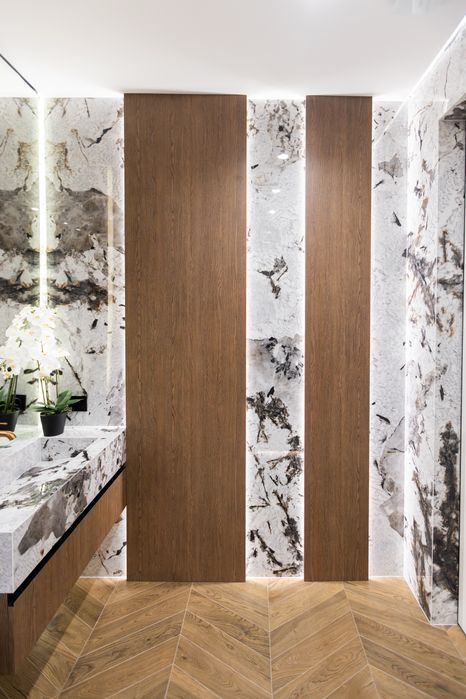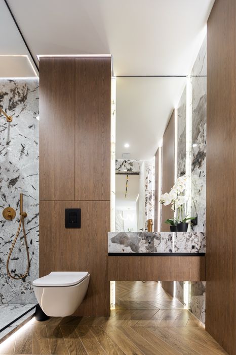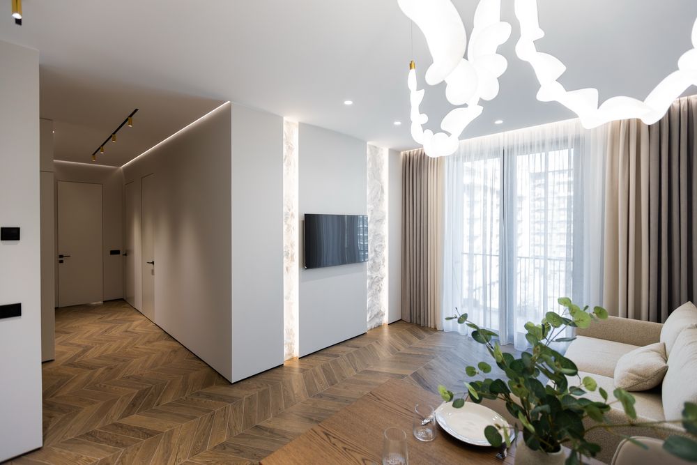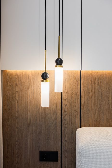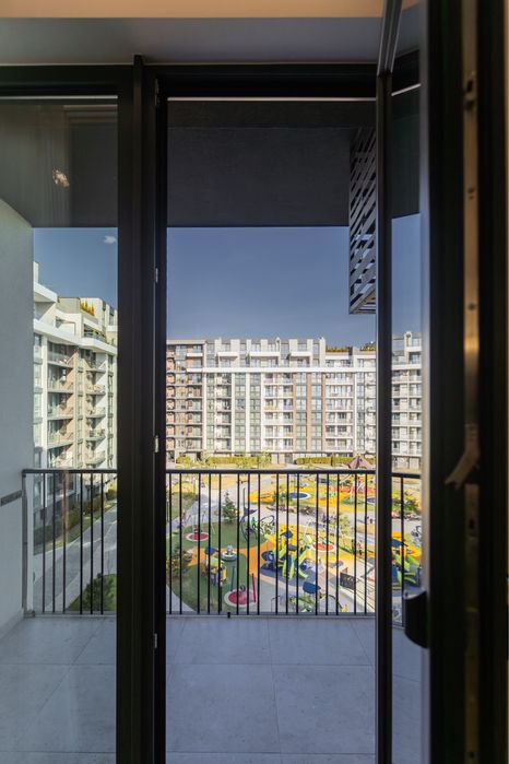 Дизайнерська квартира, з використанням преміальних матеріалів. Мебель виконана з натурального дерева та МДФ фарбованого. Всі вікна та балкон квартири виходять у внутрішній, закритий двір комплексу. Окремі 2 спальні кімнати з вмісткими шафами та панорамними вікнами. Простора кухня-вітальня. Багаторівневе освітлення квартири.