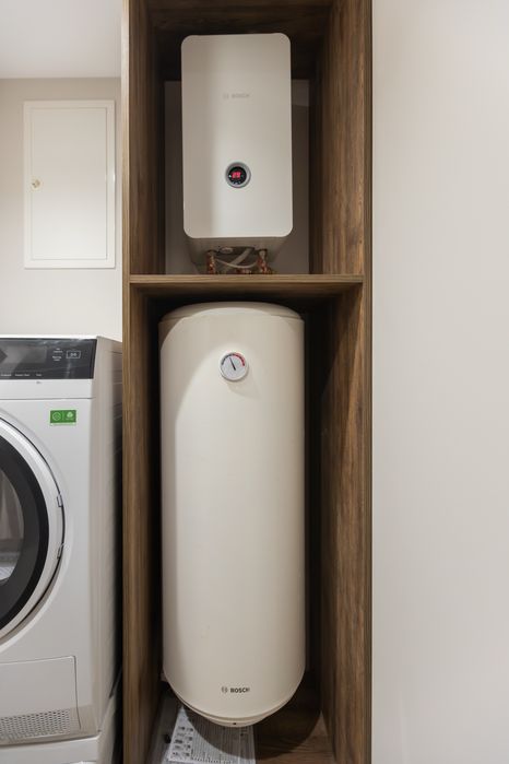 Окрема господарська кімната. Котел та великий бойлер фірми Bosch.