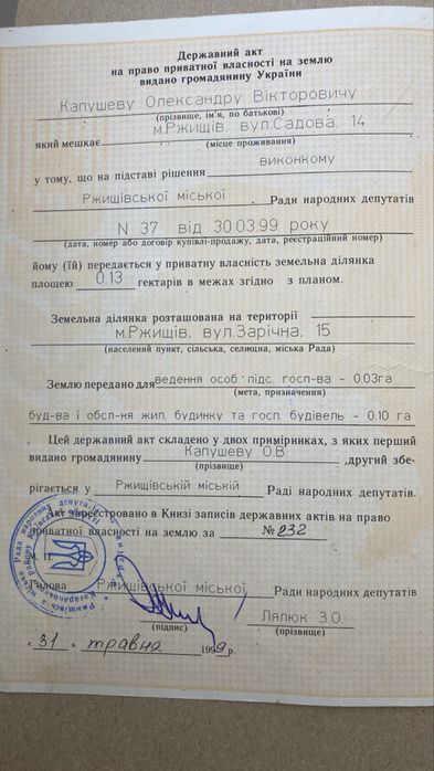 Розмір ділянки 0,13 га.