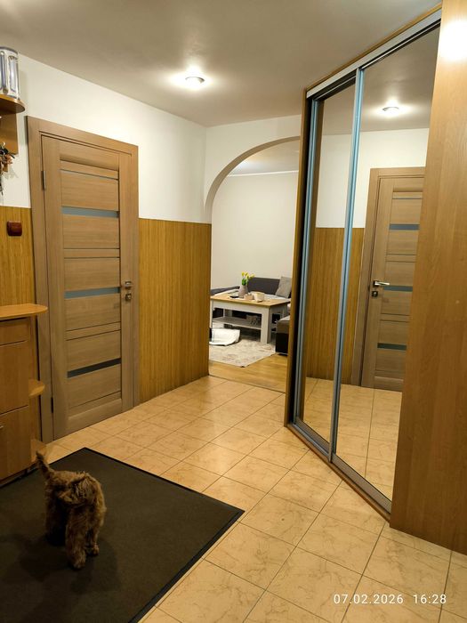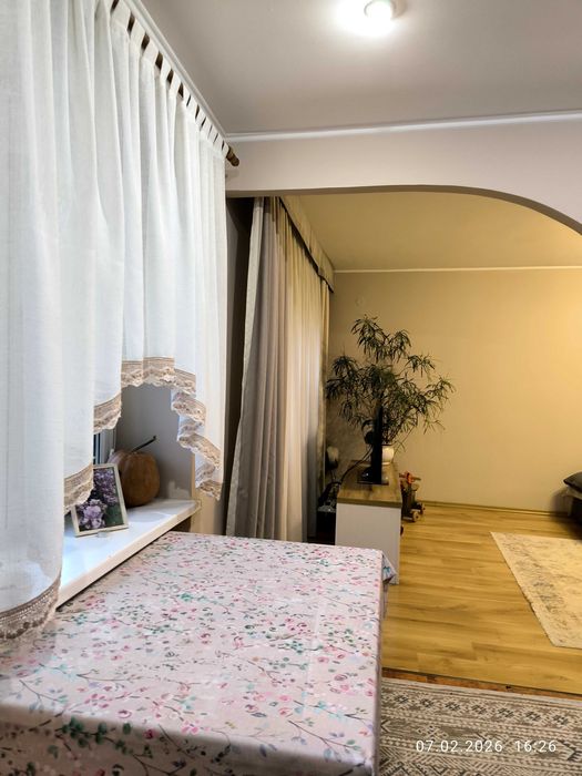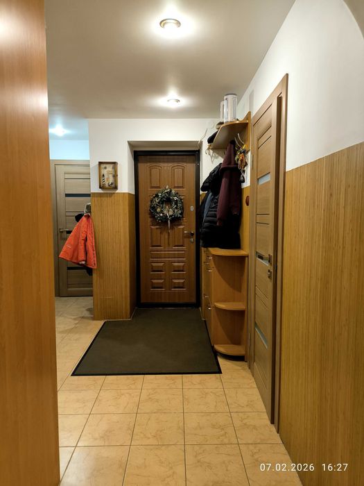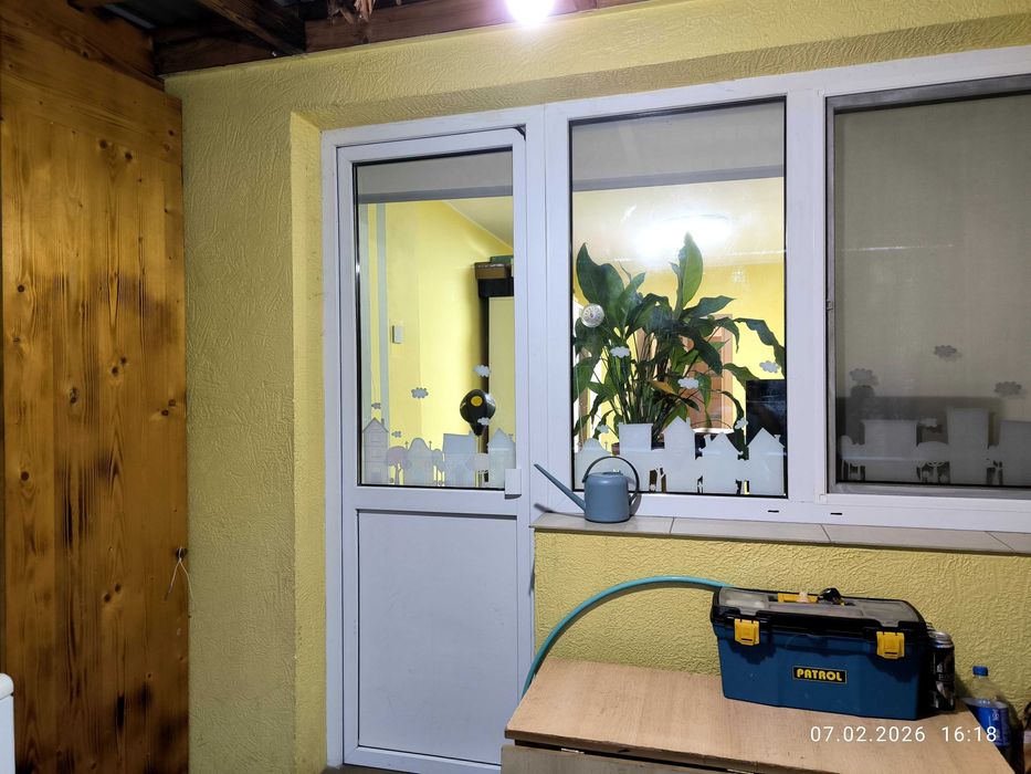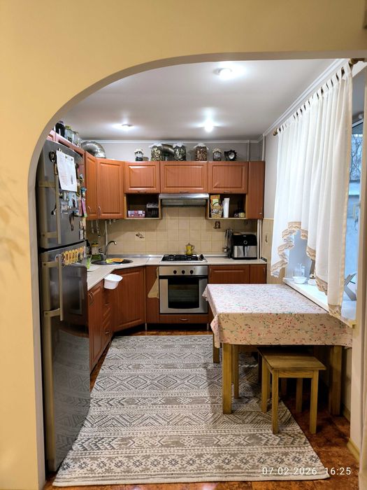 Близько року назад зроблено косметичний ремонт (перефарбовані стіни, замінено міжкімнатні двері). Перепланування змінено: кухню об'єднано з вітальнею, туалет з ванною.