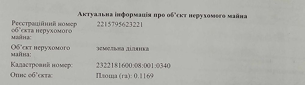| Земельна ділянка: |