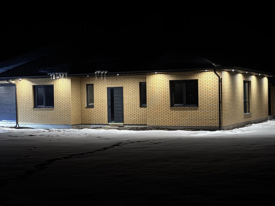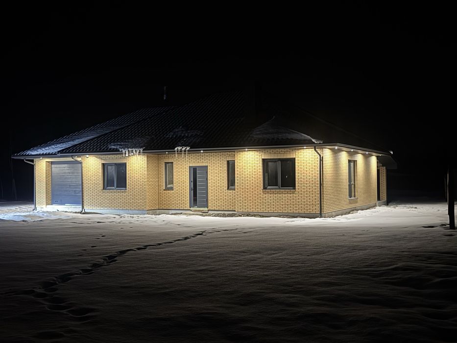 Будинок збудований з цегли, утеплений та облицьований фасадною цеглою, що гарантує довговічність, теплоізоляцію та солідний зовнішній вигляд.