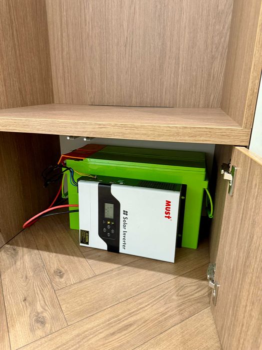 1. На етапі ремонту закладено кабелі та встановлено інвертор (3,2 кВт) з акумуляторами (200+200 Ah) у шафу (див. фото).