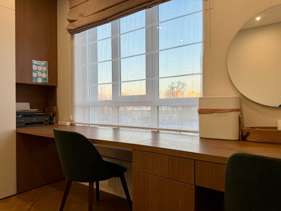 9. Кухня, шафи (у т.ч. в санвузлах), стіл у дитячій тощо - індивідуальне виготовлення (студія «Меблі Фортуна плюс»). Обідній стіл і стільці - натуральне дерево (компанія Fo.rest.mebel). М’які меблі від Konstanta.