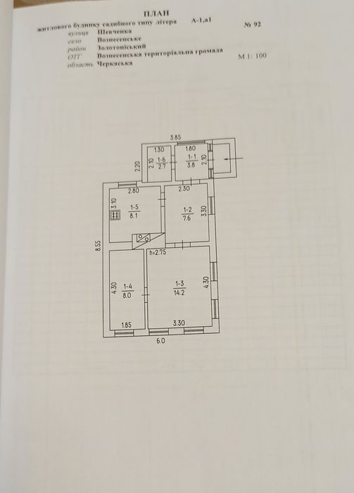 с. Вознесенське вул.Шевченка 92, загальна площа земельної ділянки 46 соток. Своя скважина, в будинку газ та опалення від газу.