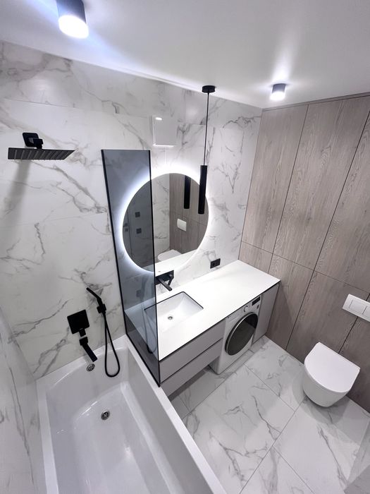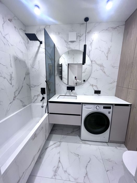 • Квартира світла, омебльована зі стильним дизайном і якісним ремонтом та новою технікою марки Whirlpool. Техніка вся нова та вбудована. Прально-сушильна машина. TV Samsung. Тепла електрична підлога по всюди де знаходиться плитка. Ліжко з підйомним механізму та розкладний диван.