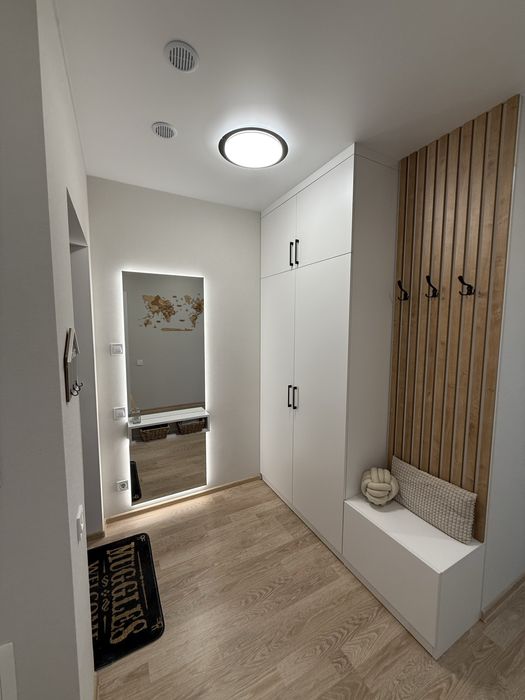 Багато місця для зберігання. Гардероб, дві великі шафи в коридорі. Велика і дуже зручна кухня. Велике, комфортне ліжко з великою зоною для зберігання під ним. Меблі якісні, зроблені під замовлення.